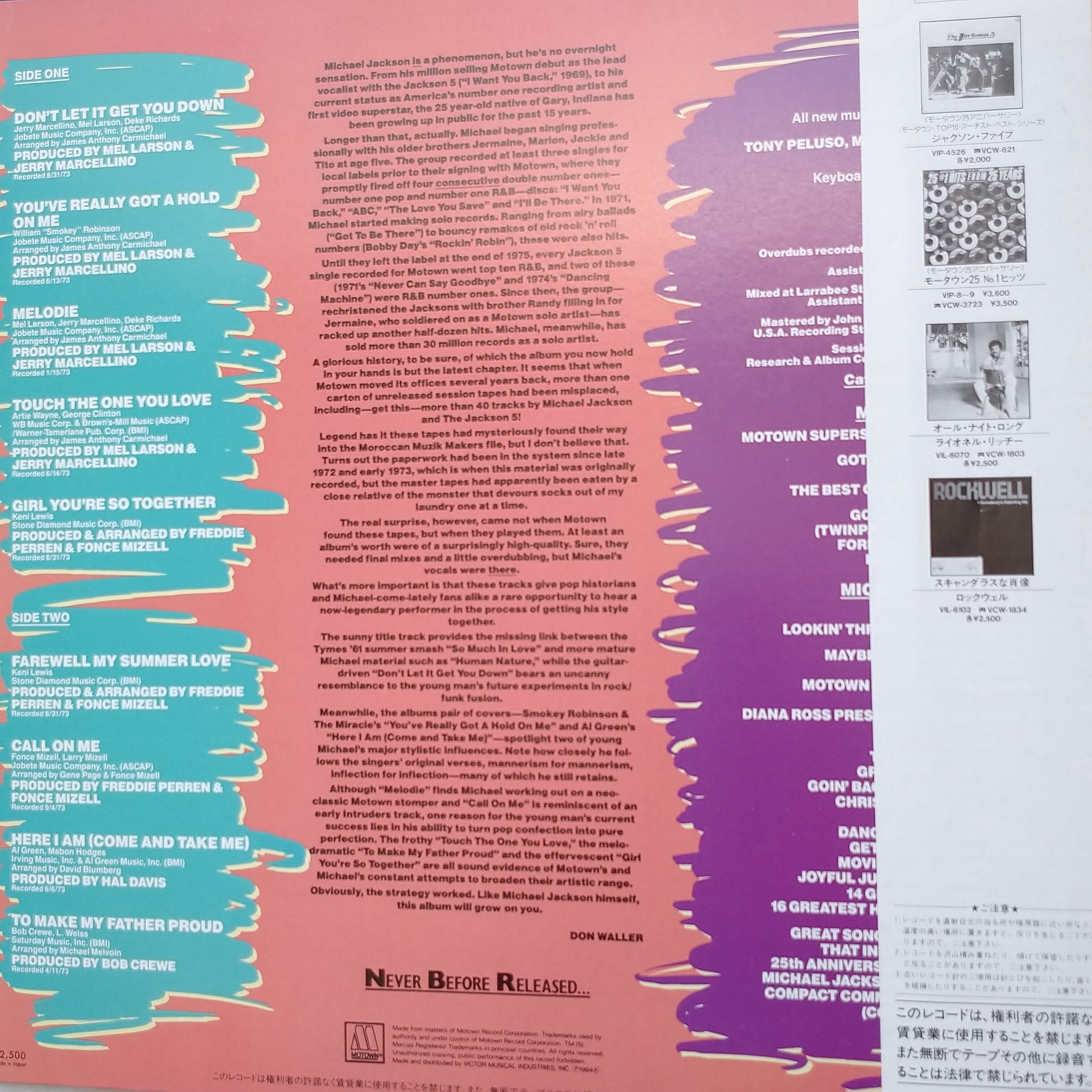 マイケル・ジャクソン/フェアウェル・マイ・サマー・ラブの正規日本盤です。オリジナルの帯と歌詞カードが付属します。