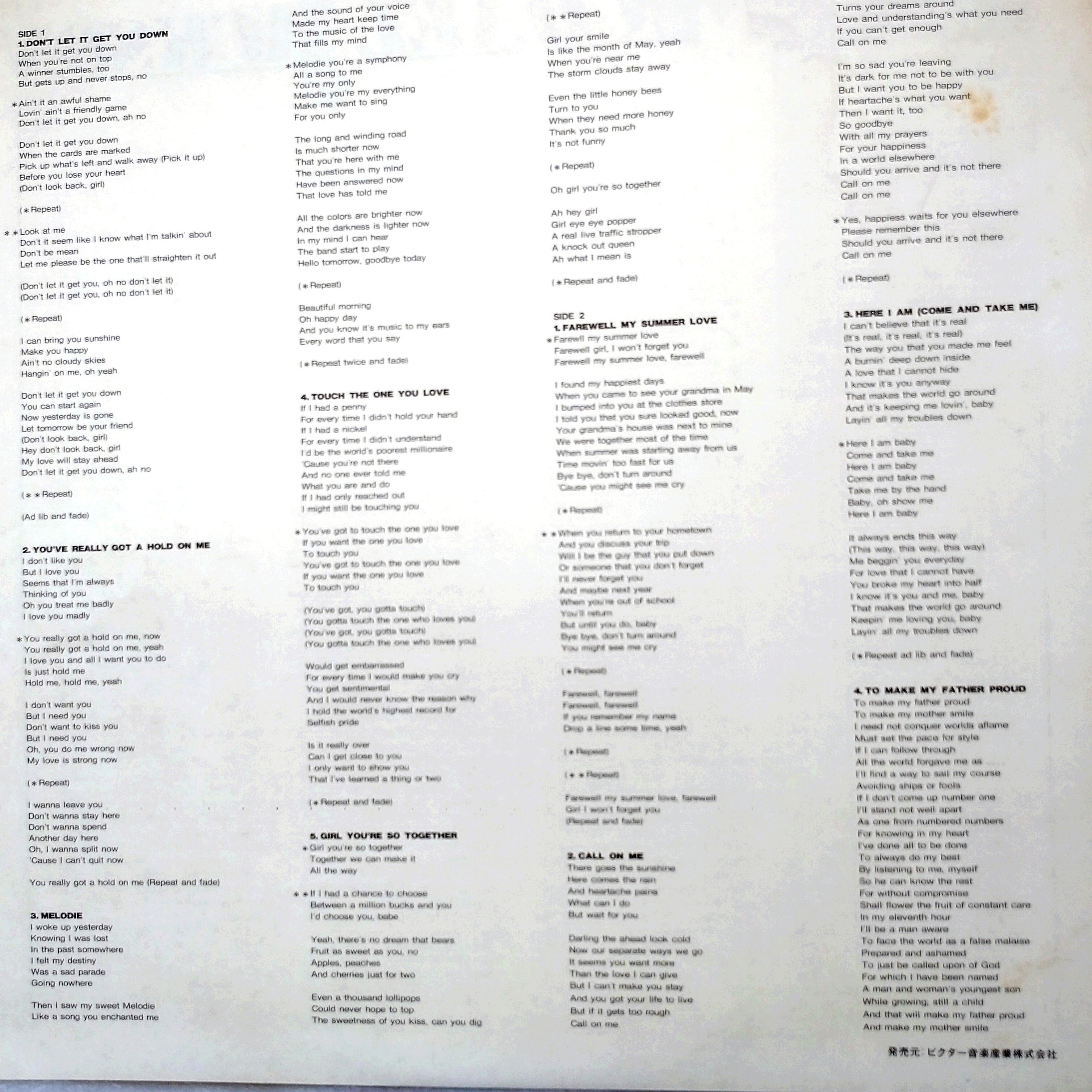 - 封入物:日本語の歌詞カード付属